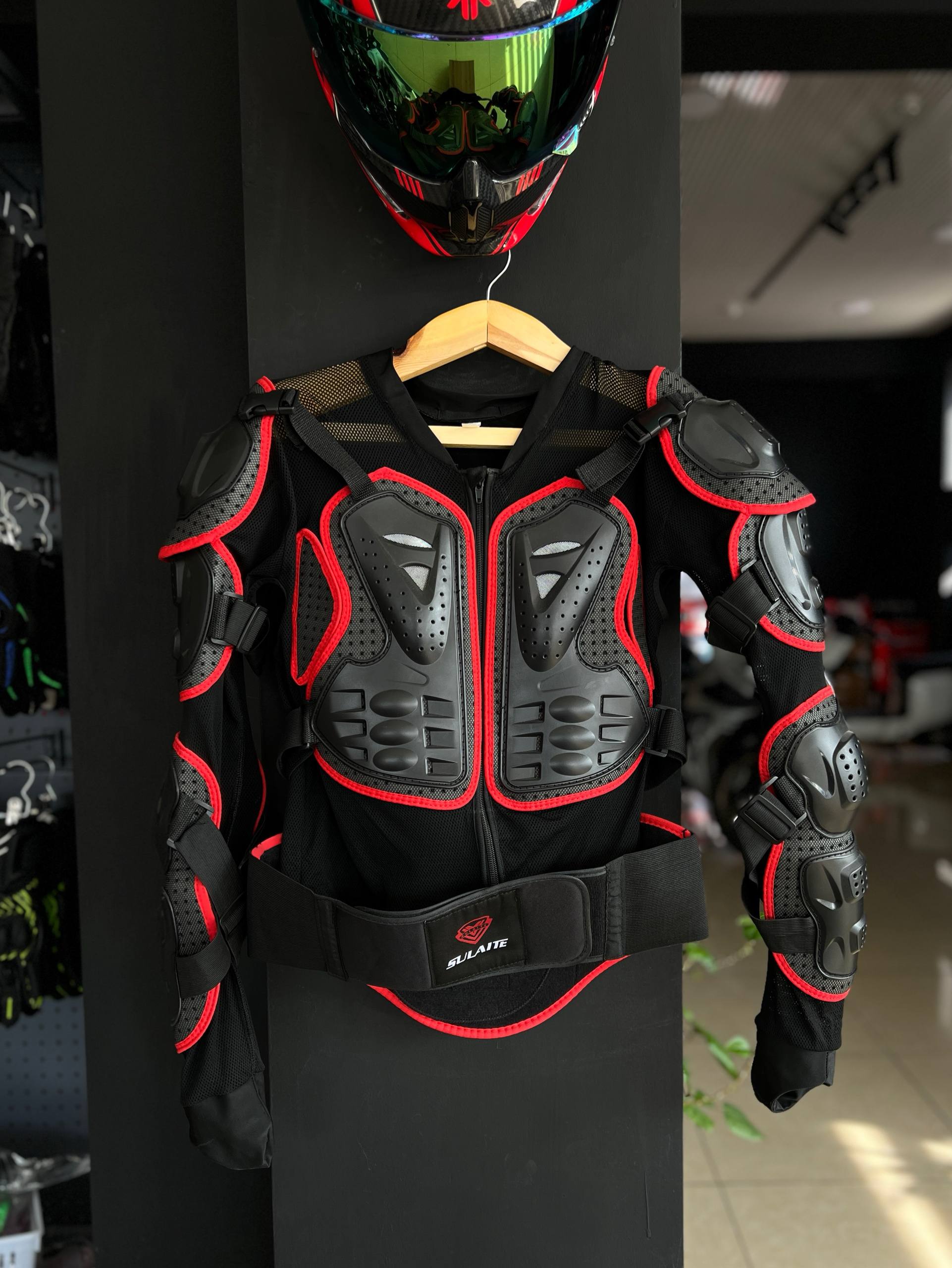 **Мотоциклетная куртка с защитной амуницией** — это стильная и надежная экипировка для мотоциклистов, которая сочетает в себе современный дизайн и высокий уровень защиты. Куртка предназначена для использования в различных условиях, будь то городская езда или спортивные заезды.